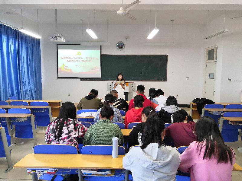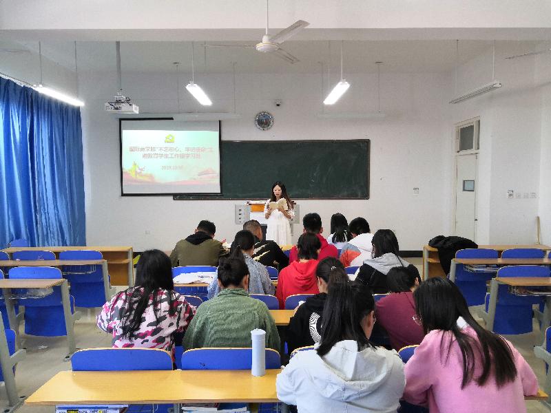 10月9日,国际商学院“不忘初心、牢记使命”主题教育学生工作组学习班开展第六次集中学习,本次学习班由国际商学院学生第一党支部书记刘端芳同志主持,辅导员及全体学生党员参加。