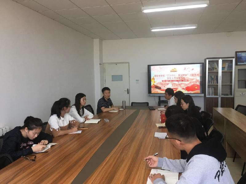 9月25日,我院“不忘初心、牢记使命”主题教育学生工作组学习班开展集中学习,本次学习班由国际商学院党总支组织委员宁兴旺主持,全体辅导员及学生党员参加学习。