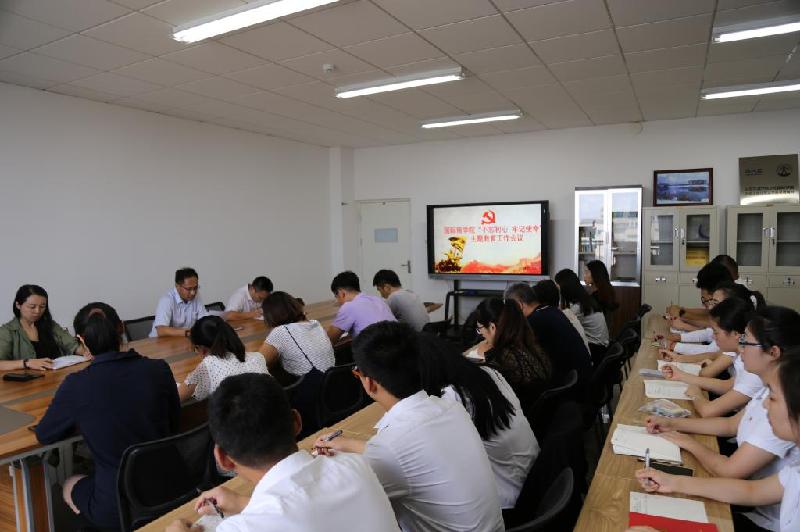 滕怀国首先传达了党中央、省委以及学校关于“不忘初心、牢记使命”的重要安排部署。随后,组织全体党员共同学习习近平总书记在“不忘初心、牢记使命”主题教育工作会议上的重要讲话精神和学校党委书记孙秀丽在“不忘初心、牢记使命”工作会议上的重要讲话。滕怀国指出,学院全体党员要坚持以习近平新时代中国特色社会主义思想为指导,提高政治站位,深刻领悟初心使命,以高标准抓好主题教育,做到学思用贯通、知信行统一。