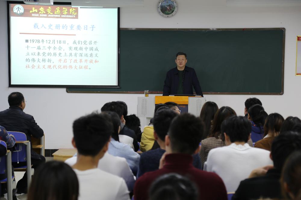 12月21日上午,陈松岩院长在威海校区为国际商学院学生做《形势政策》专题讲座,讲座的主题为“学习习近平在改革开放四十周年大会上的讲话精神”,讲座由国际商学院党总支书记滕怀国主持。