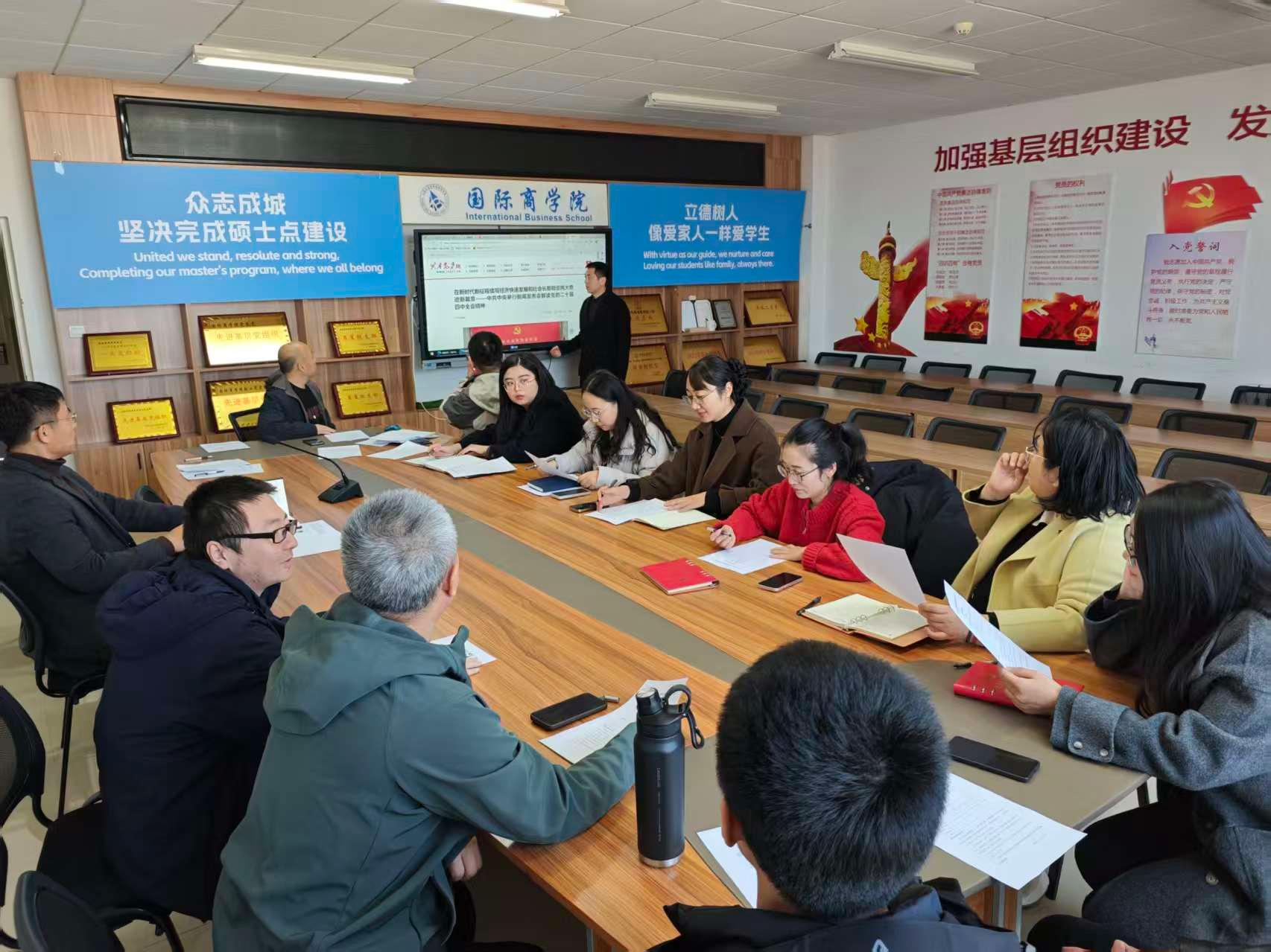 为进一步强化教职工党员对党支部建设的认知,持续提升党支部工作规范化、标准化水平,筑牢党建引领学院高质量发展的根基,11月27日,国际商学院于2号教学楼B410党员活动室开展专题党课学习活动。此次党课由国际商学院副院长王岩主讲,支部全体党员参加。