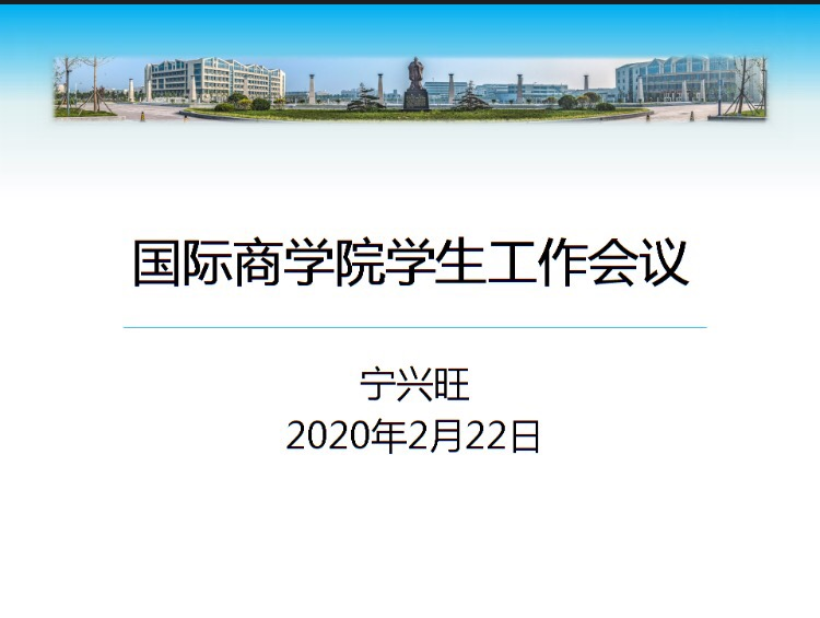会上,宁老师首先总结了自新冠肺炎疫情防控工作开展以来的具体情况,对学生干部在寒假期间积极响应学院工作给予了充分的肯定,并传达了学院近期关于疫情防控工作的相关部署。接着,宁老师对学生干部们提出要求,一是要高度重视疫情防控工作,做到工作准确又细致;二是要及时调整状态,提升责任意识,真正深入同学,发现问题及时报告。三是要开展好线上第二课堂活动,丰富同学们“宅家生活”,提升综合素养;四是要提高政治站位,勇于奉献,敢于担当,做好老师和普通学生之间的桥梁和纽带。