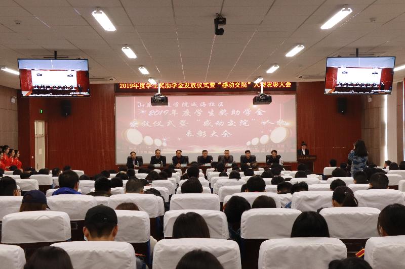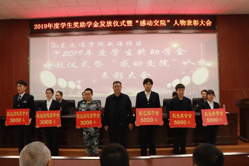 1月3日,威海校区2019年度学生奖助学金发放仪式暨“感动交院”表彰大会在威海校区第二报告厅举行。山东交通学院院长陈松岩、副院长李贞涛以及我院党总支书记滕怀国出席本次会议,参加本次大会的还有我院团总支书记宁兴旺、辅导员王旭、陈凌愿以及获表彰的优秀个人等。