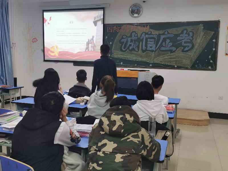 为增强同学们诚信考试意识,树立良好的考风考纪,引导同学们以积极乐观、诚实守信的态度迎接期末考试。12月25日,我院开展以“文明考风,诚信考试”为主题的团课活动。
