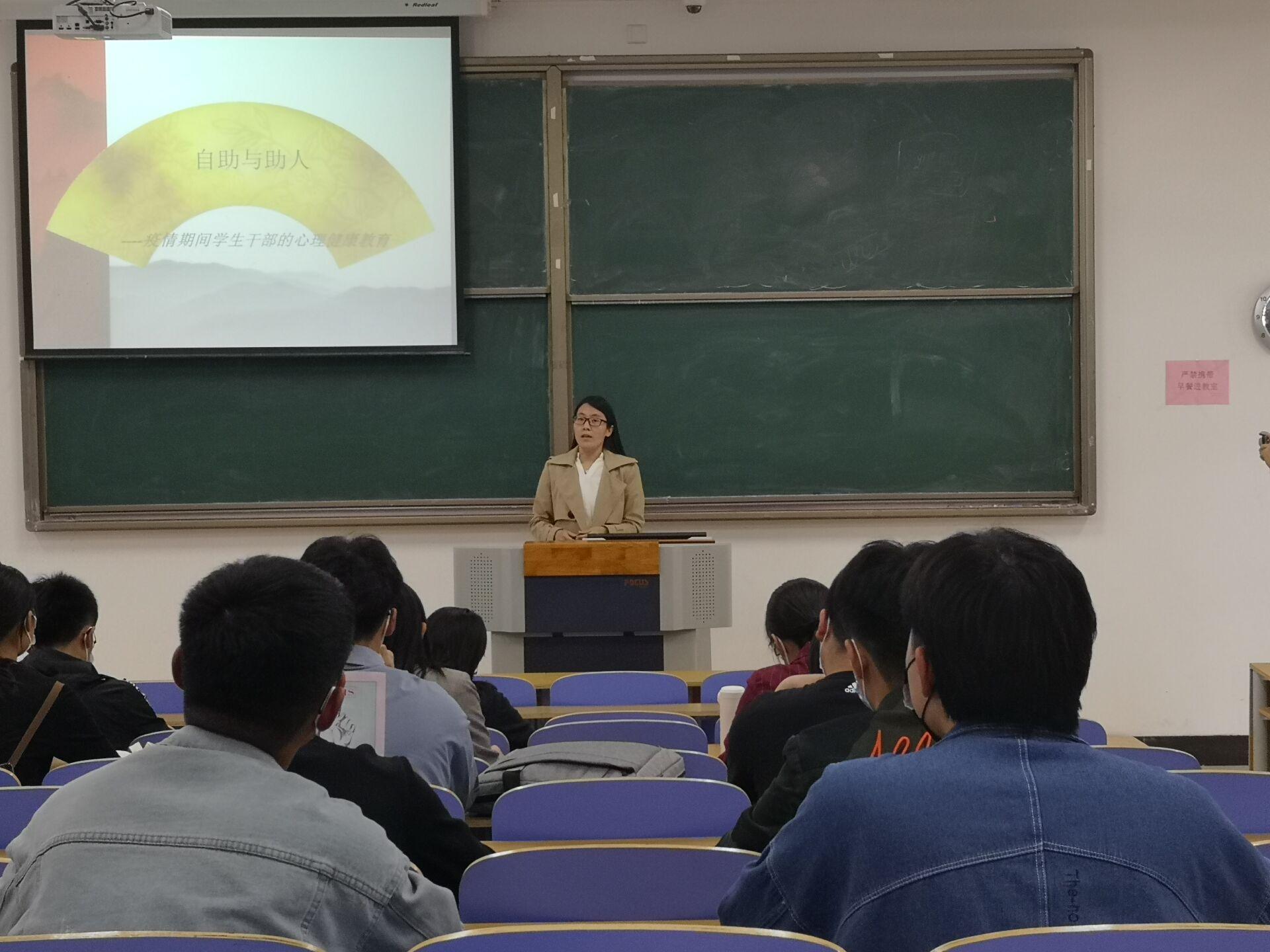 5月29日下午,校区于二号教学楼C105召开复学学生干部心理培训会,会议由校区心理健康中心徐影老师主持,我院全体返校学生干部参加。