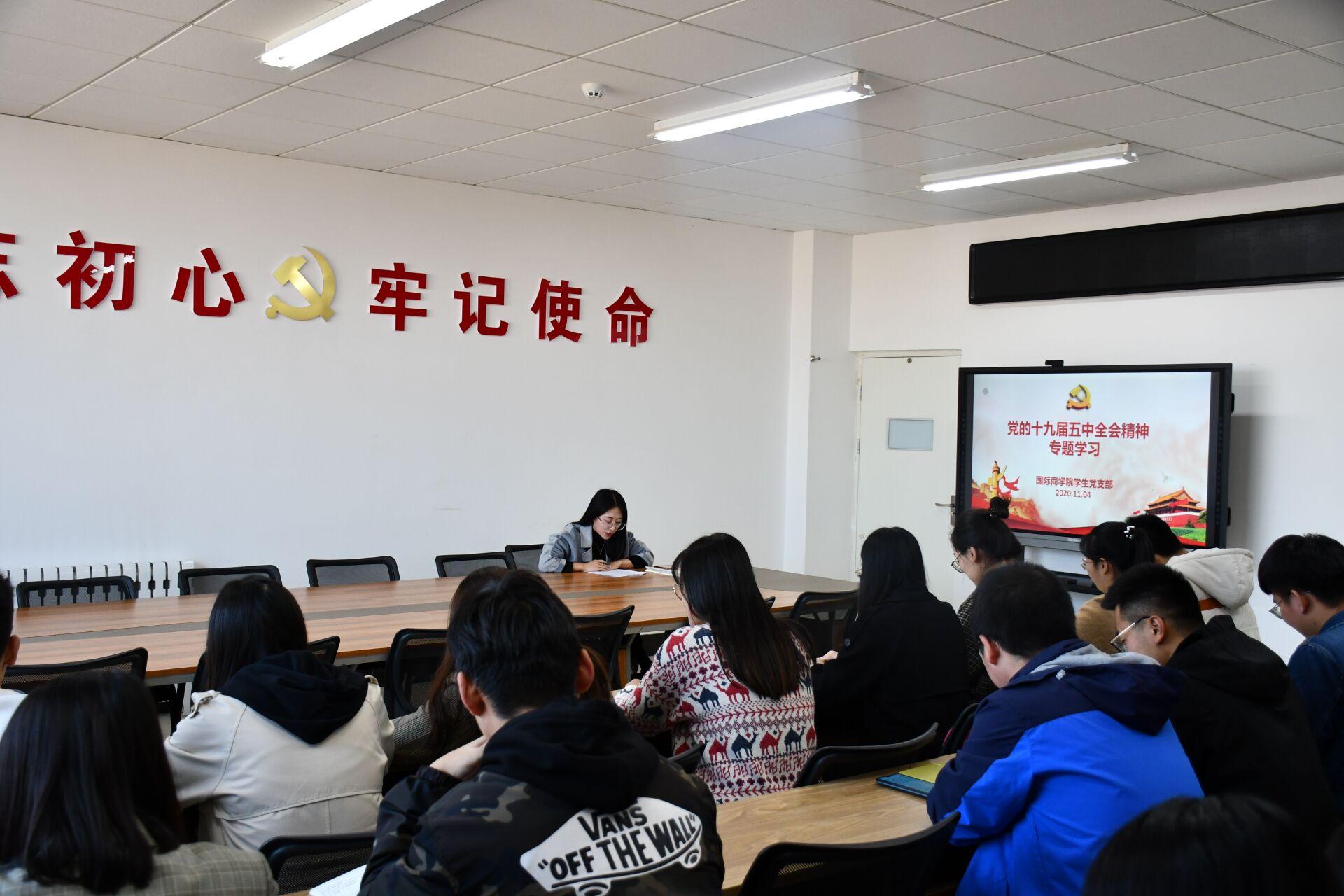 为抓好党的十九届五中全会精神的学习宣传贯彻,11月4日,我院学生党支部于2号教学楼B410召开党的十九届五中全会精神专题学习班。本次学习班由学生第一党支部书记刘端芳主持,学生党支部全体党员参加。