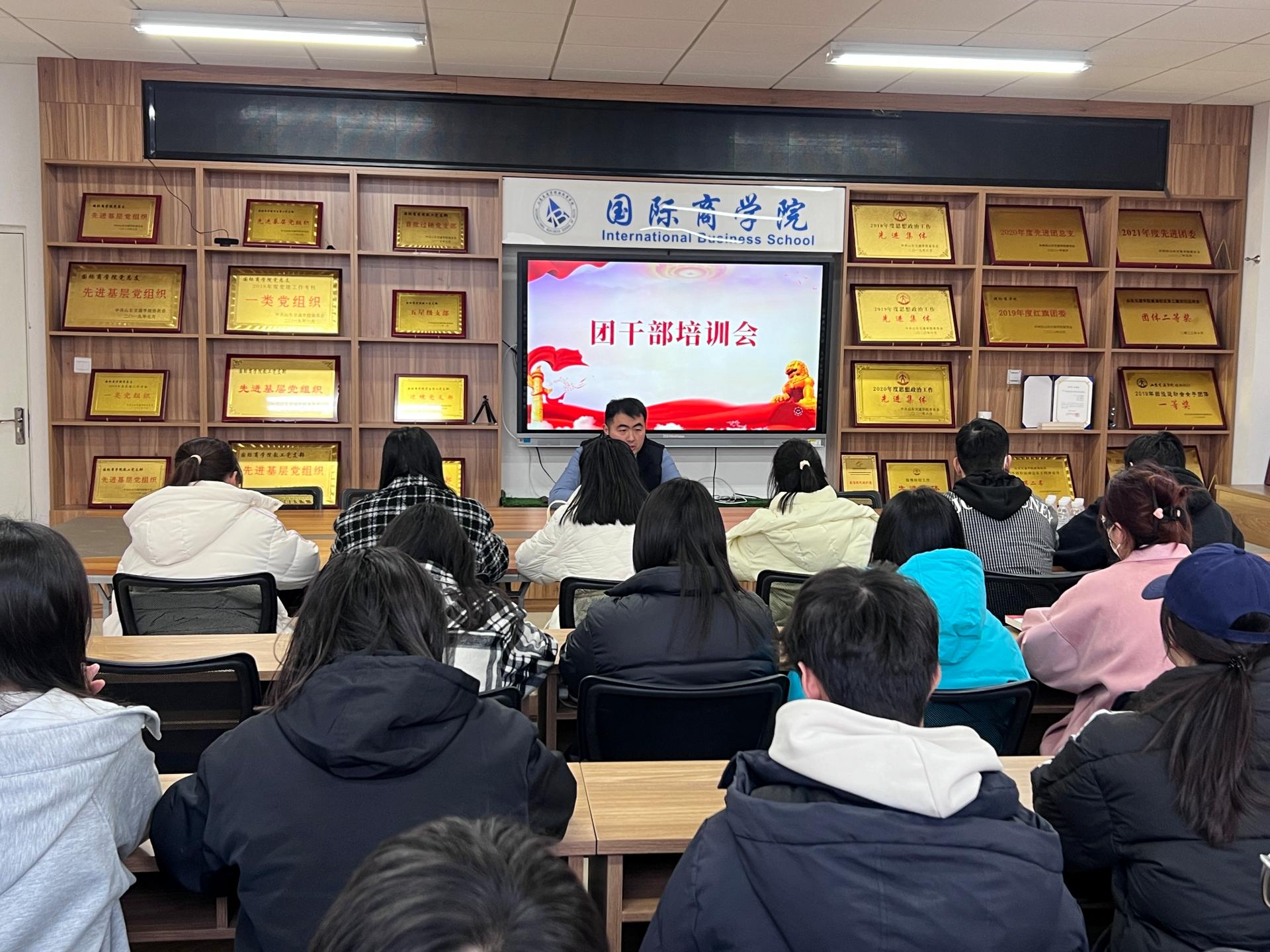 为进一步提升团干部的综合素质,推动新生力量蓬勃发展,3月21日,我院于二号教学楼B410党员活动室开展2024年度第五次团干部集中培训会,本次培训由国际商学院团委书记王旭主讲,21级、22级、23级全体团支书参加。