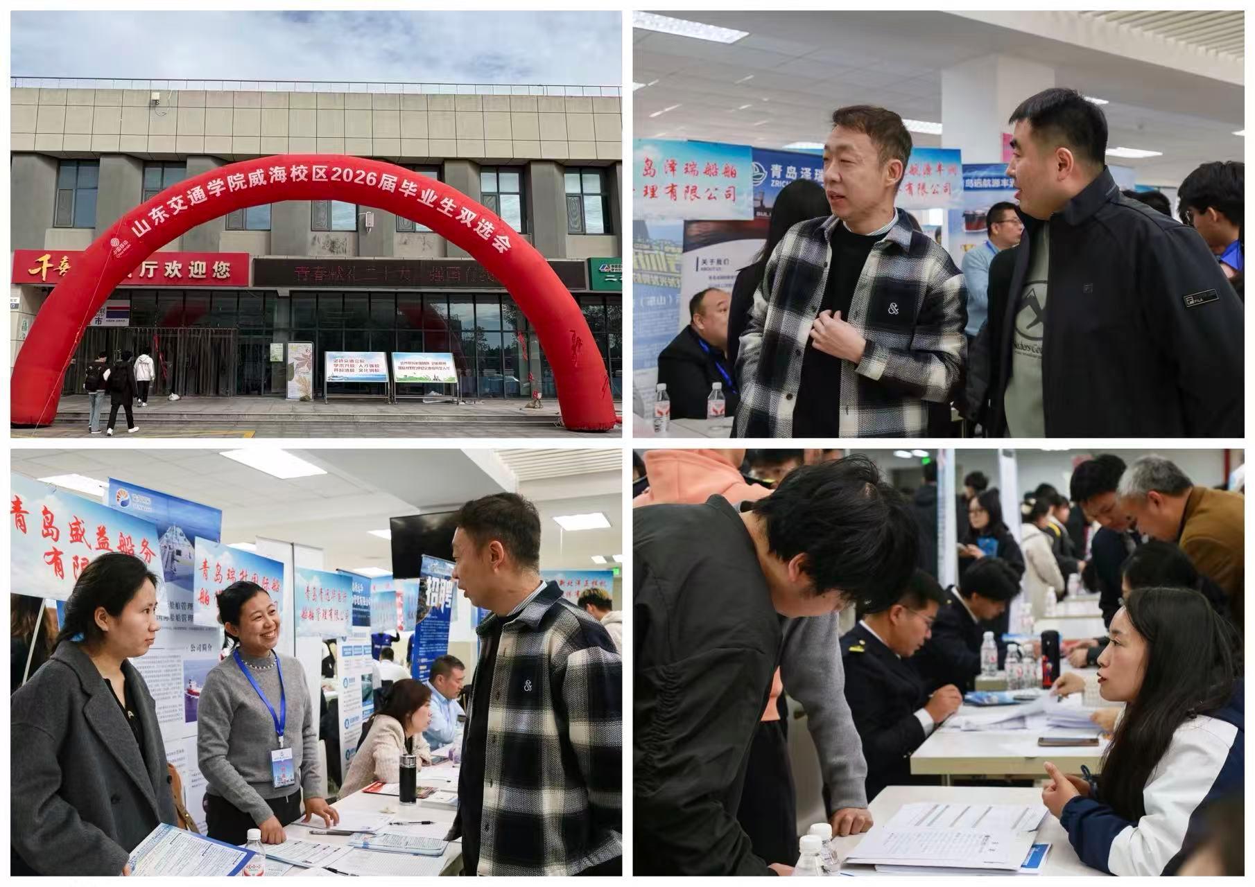 为助力毕业生解决就业问题、拓宽求职机会,搭建企业与学生直接沟通平台,10月24日,山东交通学院威海校区举办2026届毕业生双选会,72家优质企业及用人单位到场招聘,提供就业岗位1800余个。国际商学院党委副书记单成巍及毕业生辅导员进行了现场调研,我院毕业生积极参与。