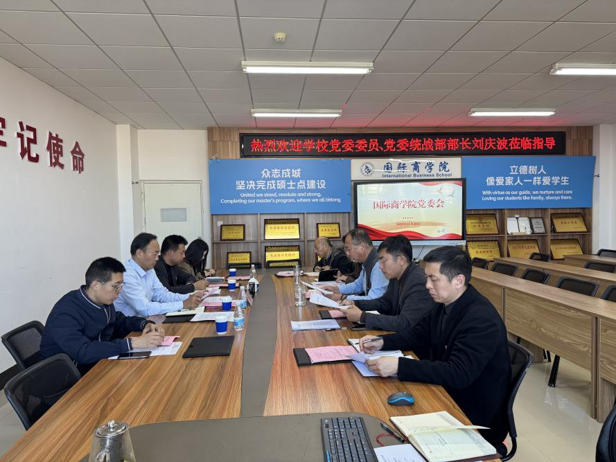 11月20日,国际商学院于威海校区2号教学楼B410会议室召开党委会、党政联席会和学院党委理论学习中心组学习。学校党委委员、党委统战部部长刘庆波列席指导并作廉政讲话,国际商学院党委书记刘佳军主持会议。