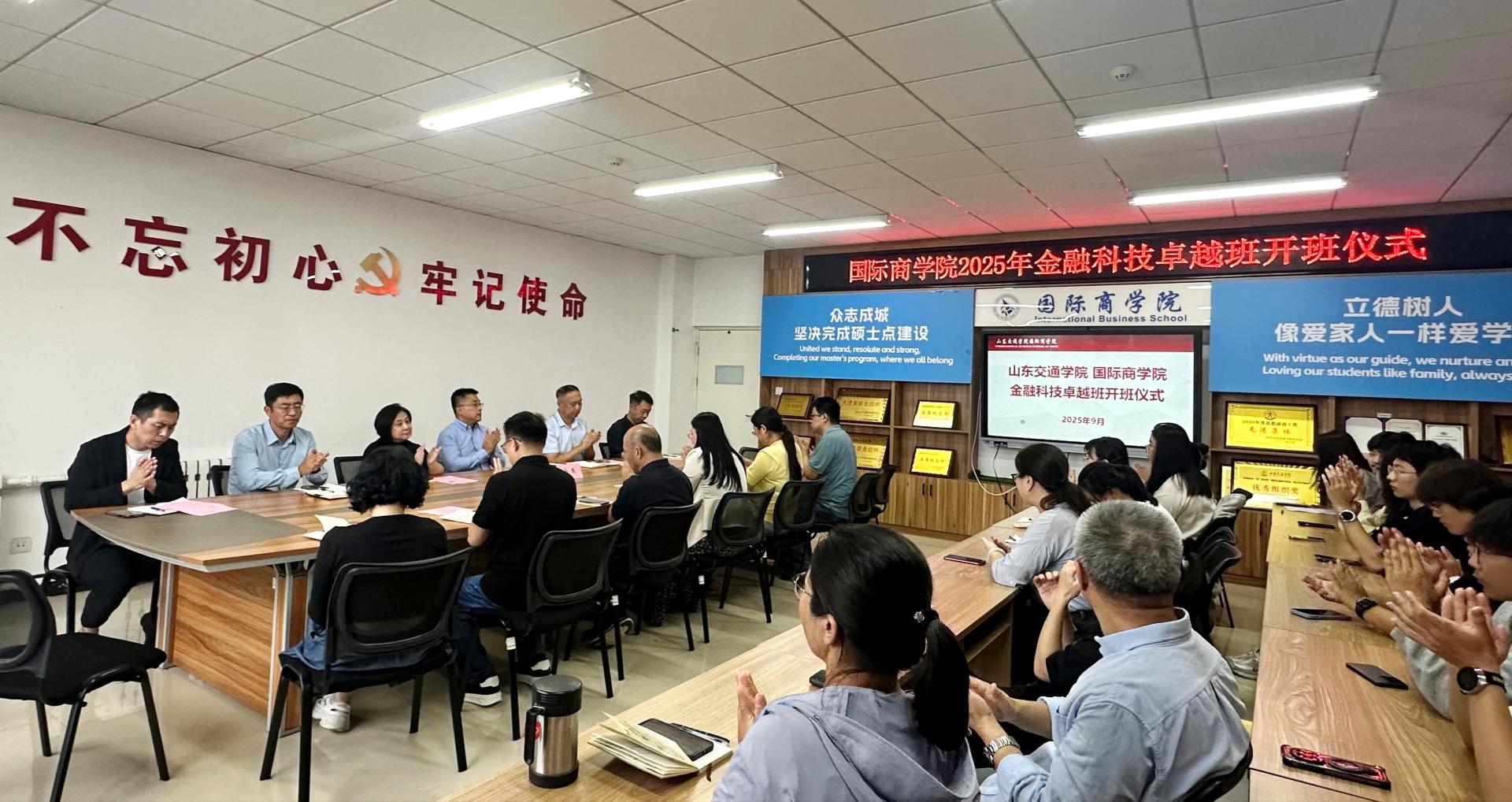 为培育具有创新思维与实践技能的卓越人才,9月24日,国际商学院于二号教学楼B410党员活动室举行2025年金融科技卓越班开班仪式,国际交流处处长马彧、学院党委书记刘佳军、院长孙龙、党委副书记单成巍、副院长王岩、金融系教师代表、辅导员代表出席,卓越班全体同学参加,副院长王岩主持会议。