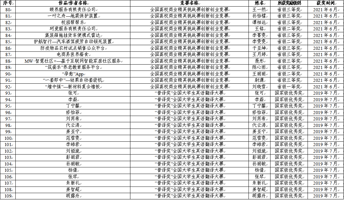 93.张可“普译奖”全国大学生英语翻译大赛国家级优秀奖