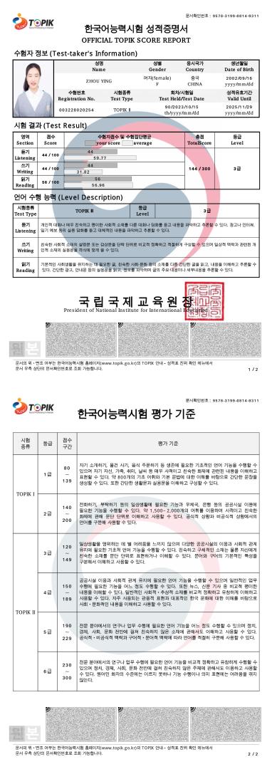 175.周莹,韩国语能力考试三级
