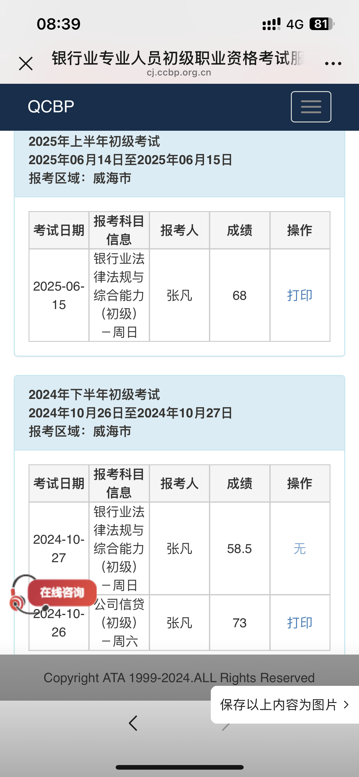 119.航金181朱志鹏,证券从业人员资格考试成绩合格证