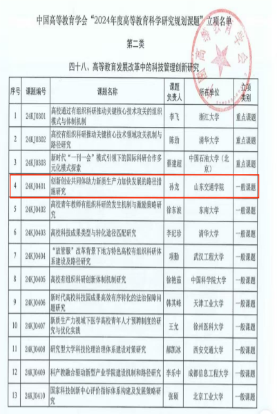 2.中国高等教育学会高等教育科学研究规划课题-创新创业共同体助力新质生产力加快发展的路径措施研究-孙龙