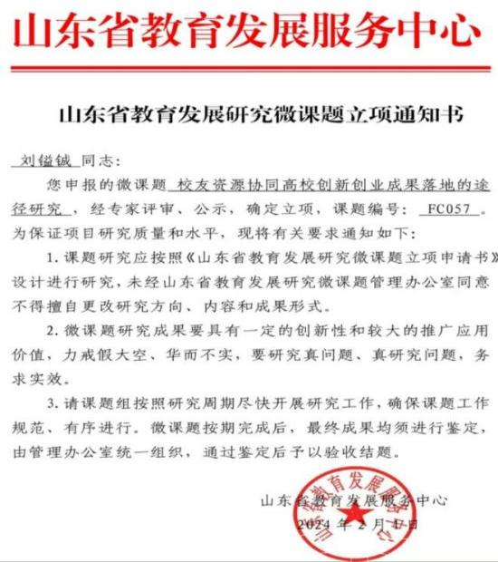 6.山东省教育发展研究微课题-校友资源协同高校创新创业成果落地的途径研究-刘镒铖