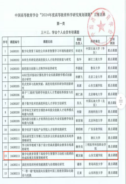1.中国高等教育学会高等教育科学研究规划课题-数字化教育背景下高校学生智慧学习动机与阻碍的形成机理及发展策略研究-戴友榆