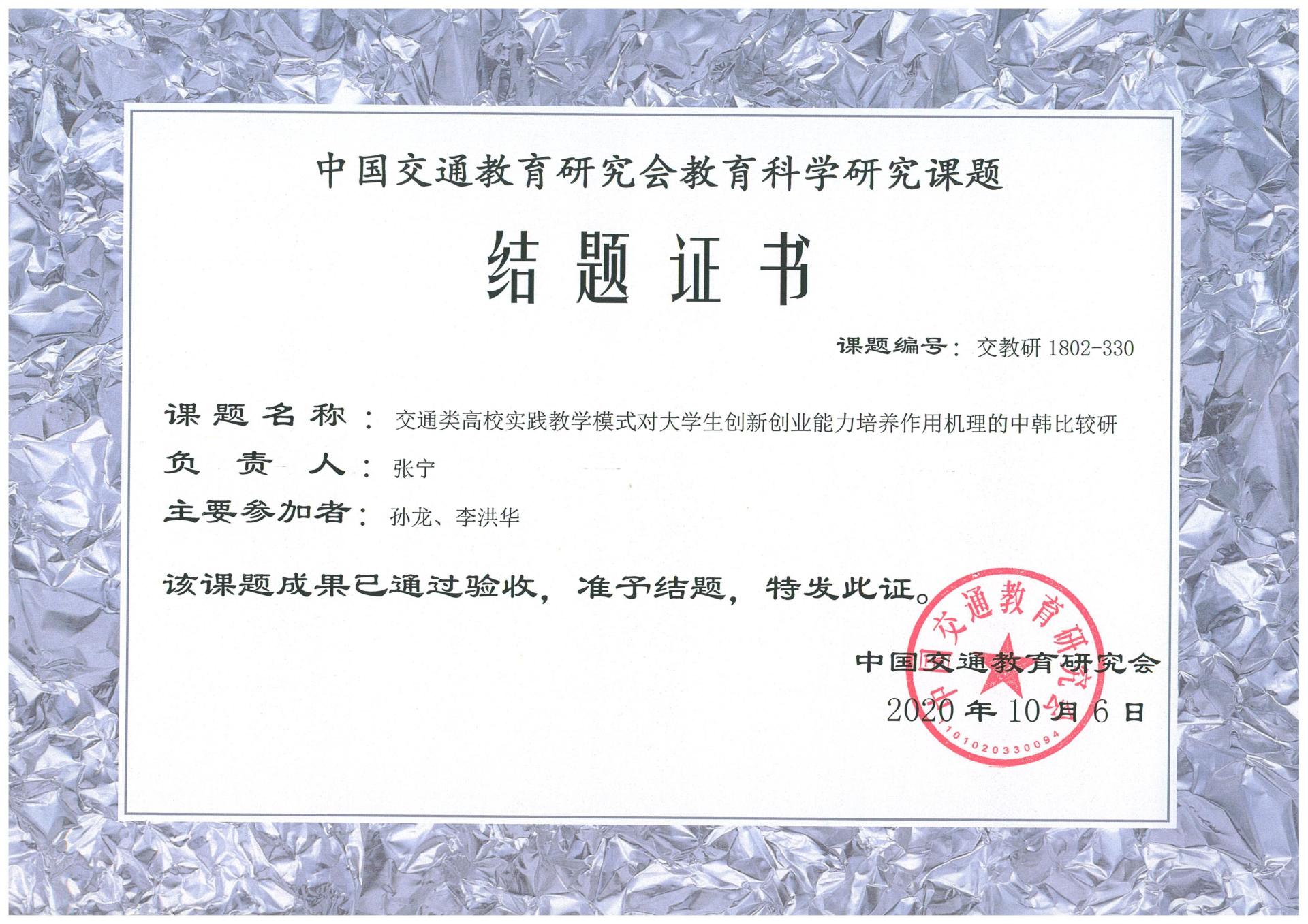 16.中国交通教育研究会教育科学研究课题-交通类高校实践教学模式对大学生创新创业能力培养作用机理的中韩比较研究-孙龙