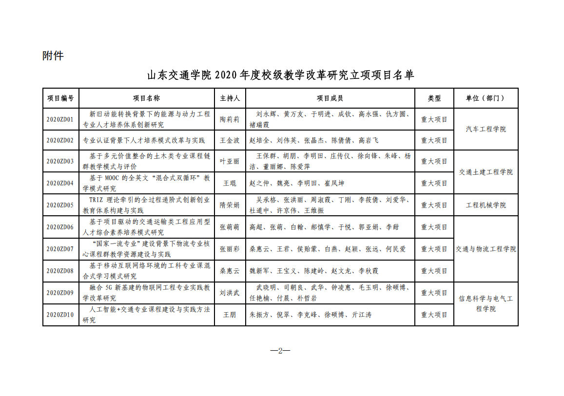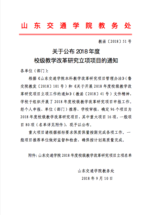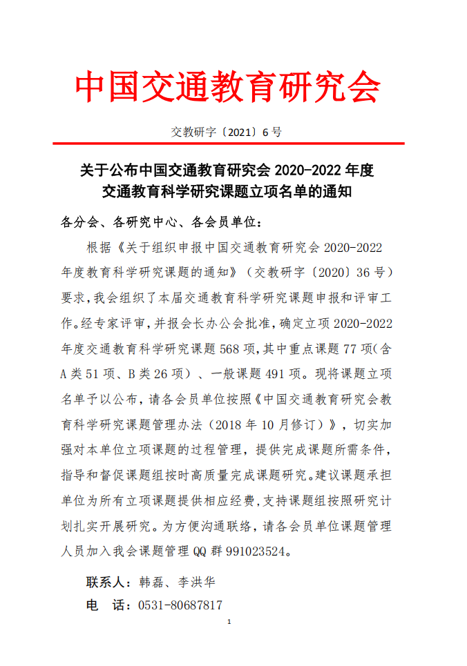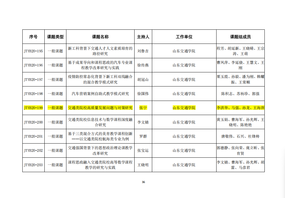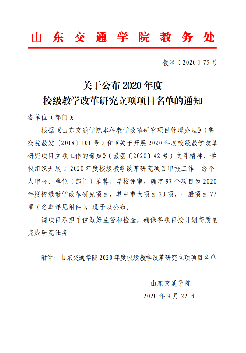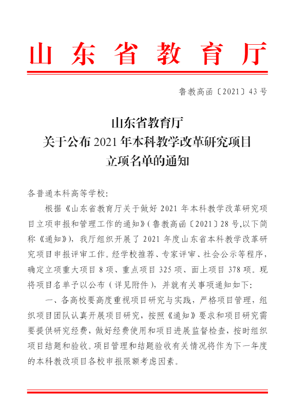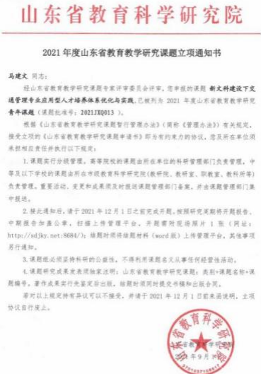 5.山东省教育教学研究课题-新文科建设下交通管理专业应用型人才培养体系优化与实践-马建文