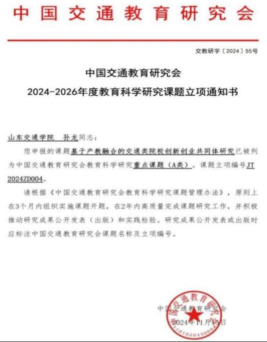 13.中国交通教育研究会教育科学研究课题-基于产教融合的交通类院校创新创业共同体研究-孙龙