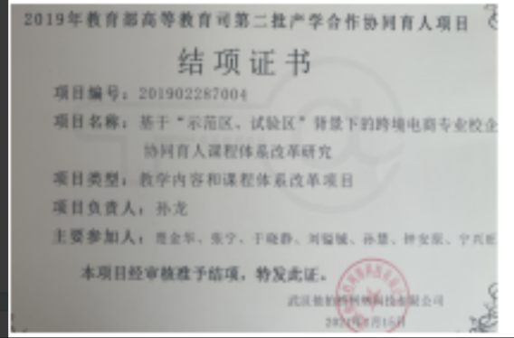 12.教育部产学合作协同育人项目-基于“示范区、试验区”背景下的跨境电商专业校企协同育人课程体系改革研究-孙龙