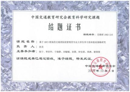 17.中国交通教育研究会教育科学研究课题-基于 ARCS 视角的交通类院校管理类专业大学生学习效率提高策略研究-孙龙