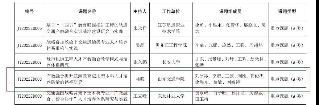 14.中国交通教育研究会教育科学研究课题-产教融合提升航海教育应用型本科人才培养质量的路径研究-马强