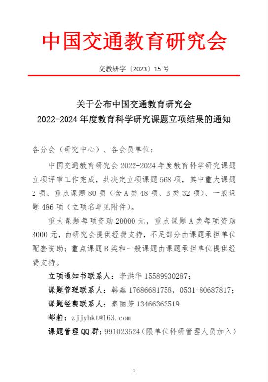 15.中国交通教育研究会教育科学研究课题-交通类院校高质量发展问题与对策研究-孙龙