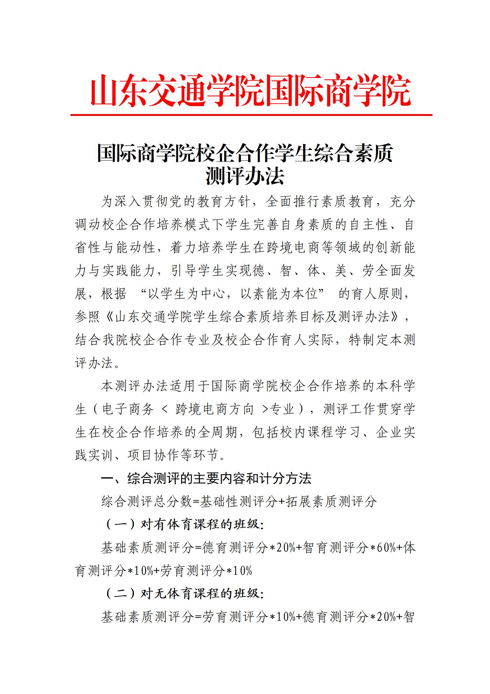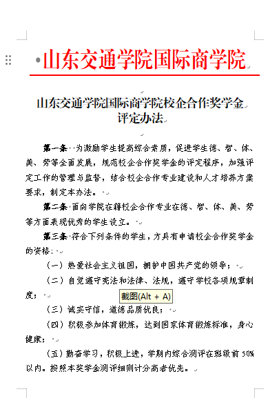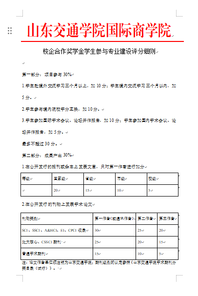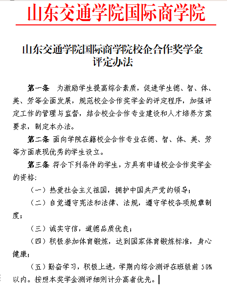 4.山东交通学院国际商学院校企合作奖学金评定办法