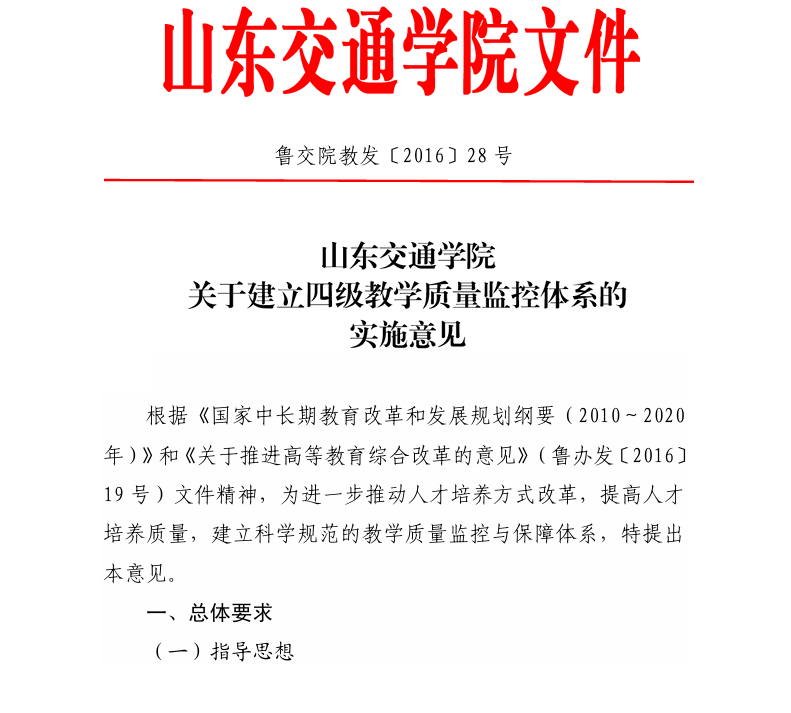15.山东交通学院关于建立四级教学质量监控体系的实施意见