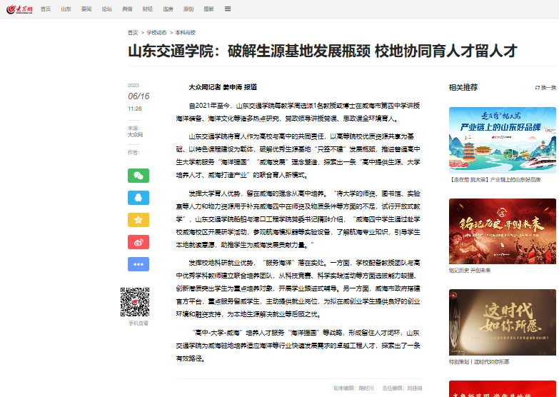 7.山东交通学院:聚力涉海特色专业 提升思政育人实效