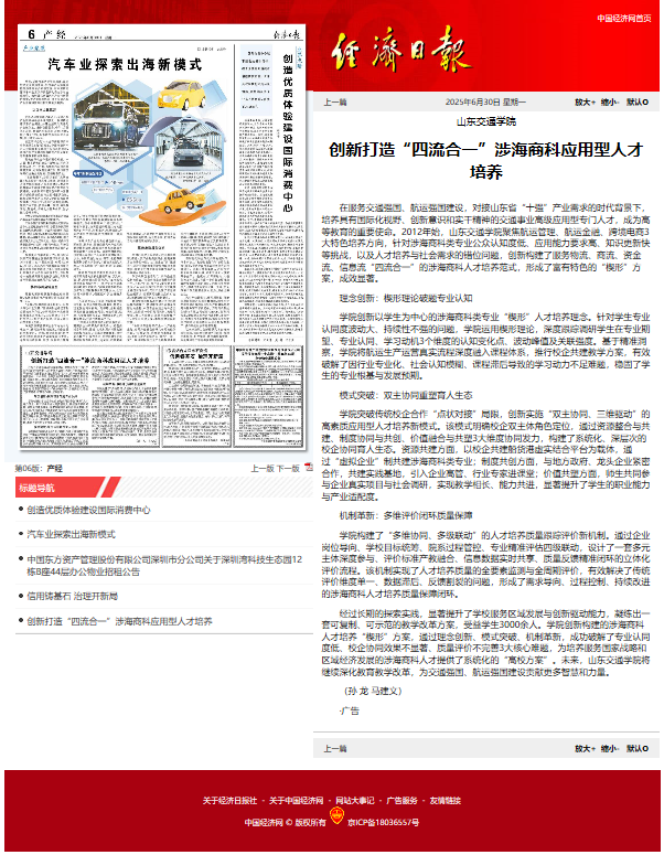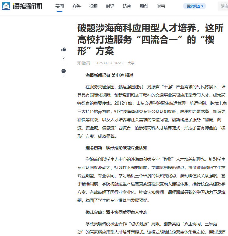 3.山东交通学院:破解涉海商科应用型人才培养,这所高校打造服务“四流合一”的“楔形”方案