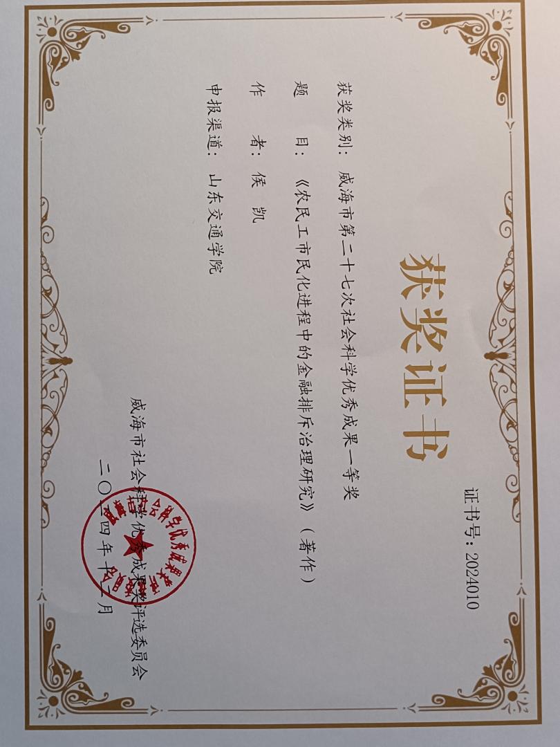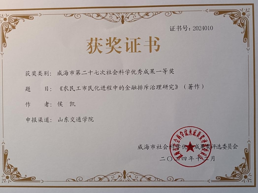 4.威海市社会科学优秀成果一等奖—侯凯—威海市社科联