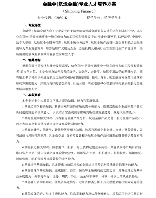 25.金融学专业(航运金融)人才培养方案课程体系—山东交通学院