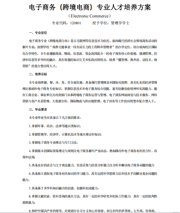 23.电子商务专业(跨境电商)人才培养方案课程体系—山东交通学院