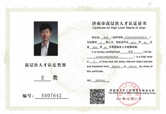 18.济南市高层次人才—孙龙—济南市人才工作领导小组