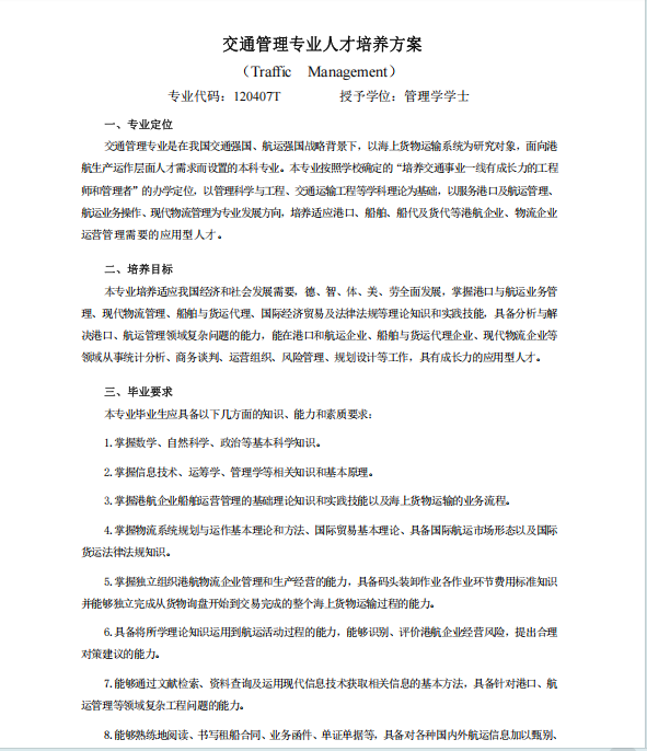 24.交通管理(国际航运)人才培养方案课程体系—山东交通学院